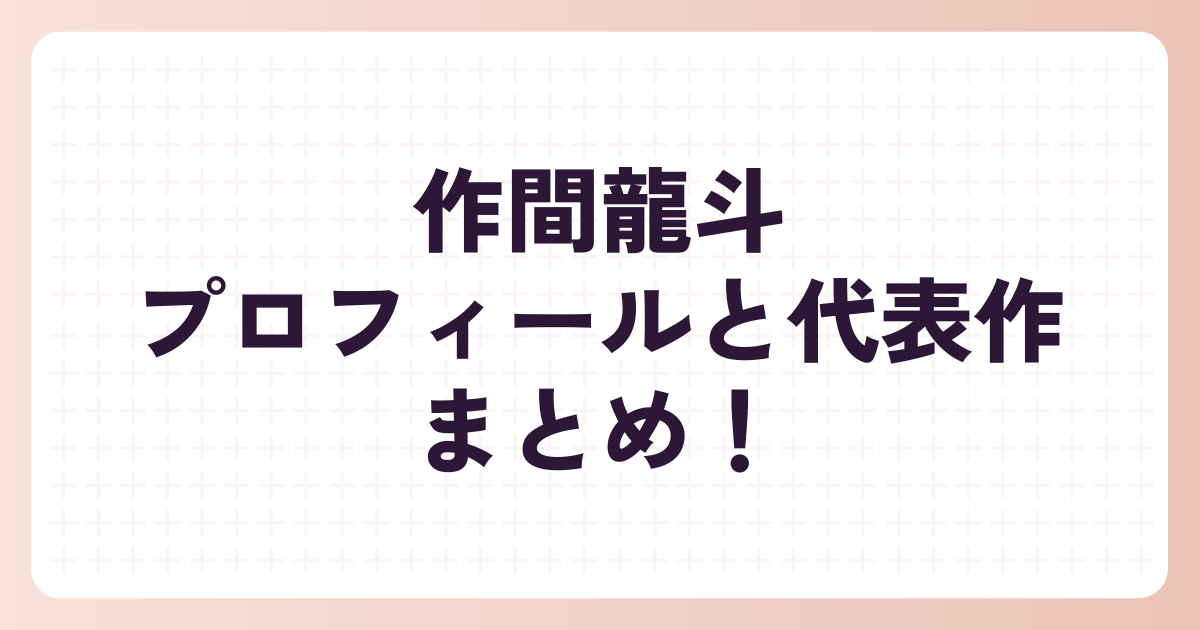 作間龍斗という俳優の魅力を語る上で、避けて通れない大切な作品群を紹介します。