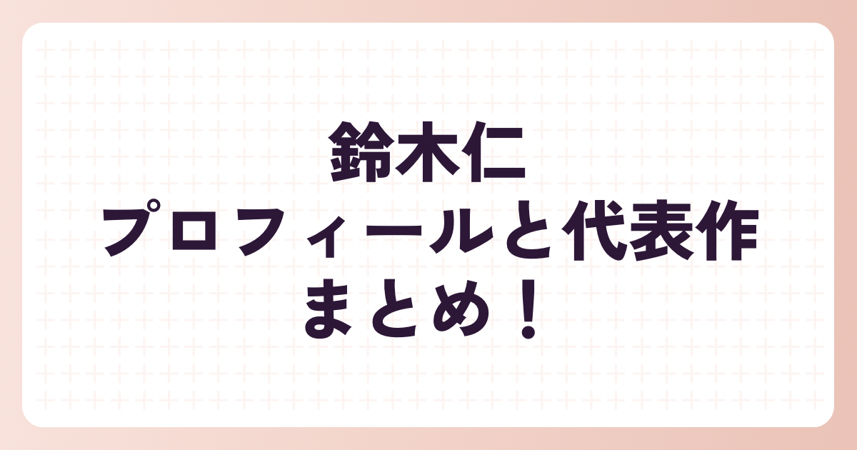 今回は、そんな鈴木仁さんの最新プロフィールと、絶対にチェックしておきたい代表作を詳しくご紹介します!